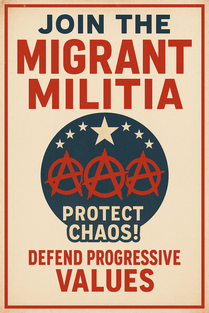 Sources confirm the new Migrant Militia will be tasked with guarding Antifa safe zones, ensuring graffiti artists aren’t harassed during “creative expression time,” and escorting looters safely back to their cars.